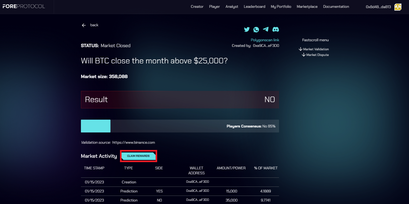 Step 4: Click “Claim Rewards” in the Market Activity section of the page to check and withdraw your rewards.