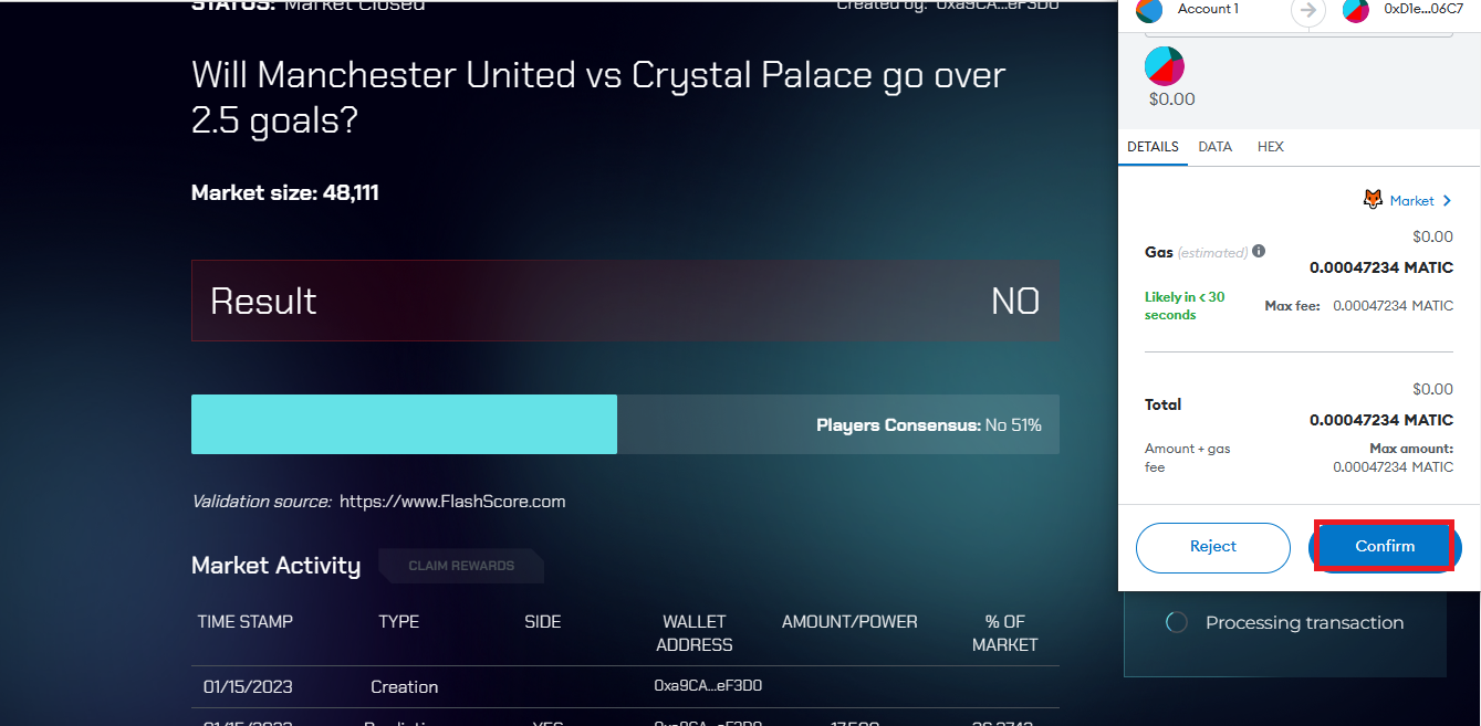 Step 8: Check your wallet notification to confirm your transaction. Click “Confirm” to indicate that you intend to send the transaction to the blockchain.